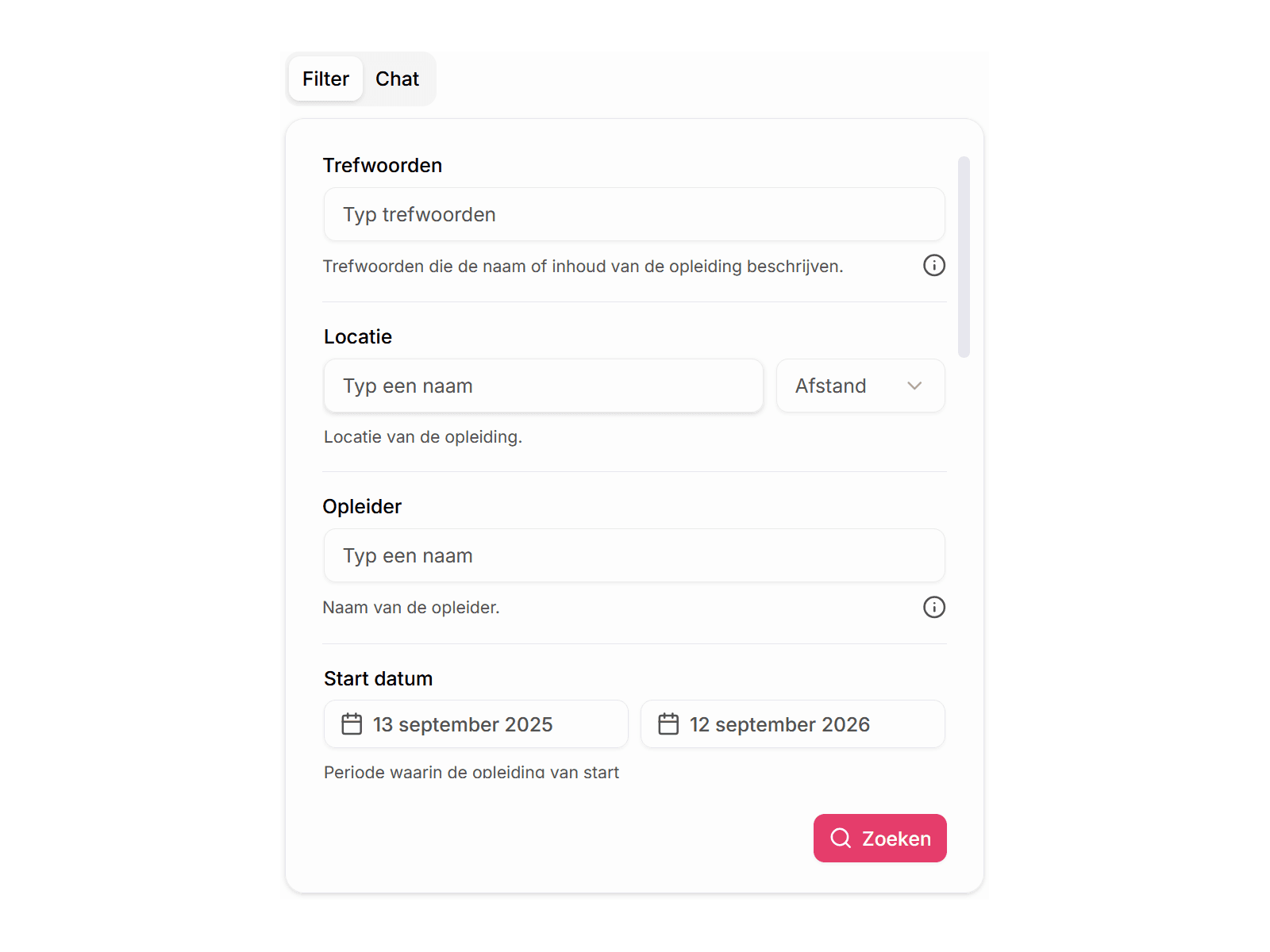 Doorzoek alle opleidingen in Nederland met slimme filters. Vind altijd een opleiding die past bij wat jouw organisatie nu nodig heeft: van beroepsopleiding tot skillgerichte training.